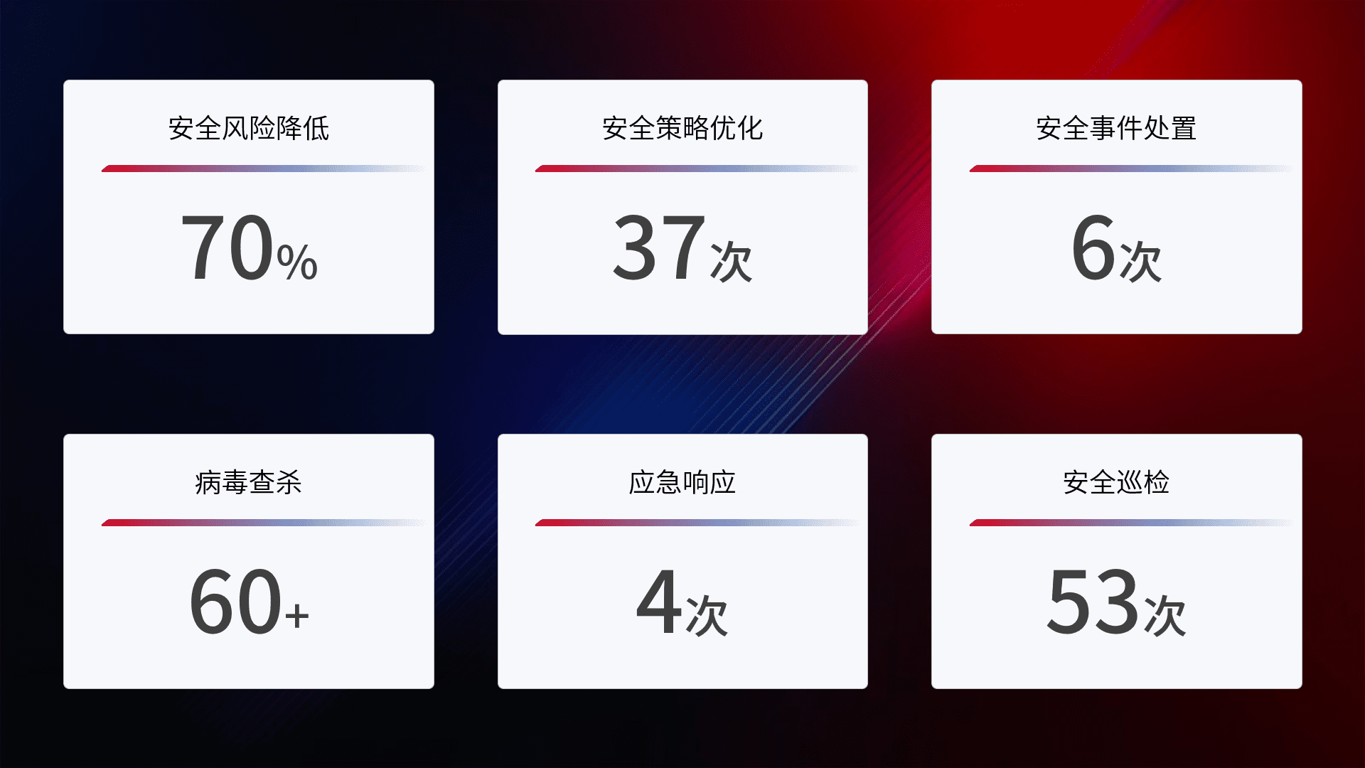 提供全面的安全事件报告体系,,包括处置报告、、、周报、、季度和年度总结,,,结合持续监控,,,帮助客户深入了解网络安全状况。。。